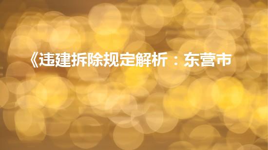 违建长期存在已成为国内城市建设的一种突出问题,东营市的违建问题也一直未得到解决。由于违建危害甚大,不仅对城市环境造成破坏,更会影响城市居民的正常生活。东营市针对这一问题制定了相关的违建拆除规定,并进行实践,以期实现城市的良性发展。