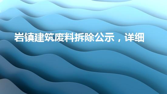 岩镇建筑废料拆除公示是指在对建筑废料进行拆除、处置前,需要向政府和公众发布拆除公示。本文旨在介绍岩镇建筑废料拆除公示的详细操作流程。为此,我们请来了一位拆除行业专家,从4-6个方面进行深入分析,向读者介绍岩镇建筑废料拆除公示的重要性和具体操作步骤。