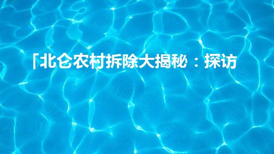 本文将介绍一篇名为「北仑农村拆除大揭秘:探访拆迁现场,分析影响与挑战」的文章,对该文章进行详细的解读和分析。文章所描述的北仑农村拆除情况,引起了广泛的关注。本文作者作为拆除行业的专家,将从多个方面对该文章进行深入分析,探讨拆除过程中遇到的各种问题,并提供专业的见解和建议。