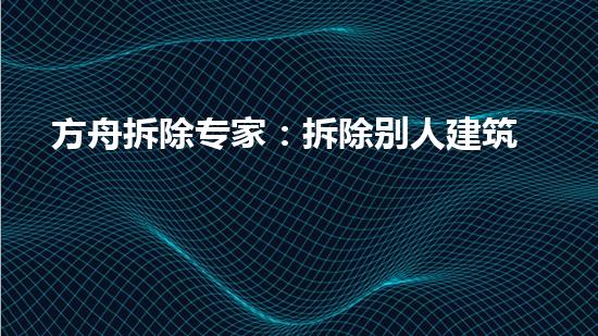 随着城市化的进程不断加速,拆除行业的需求量也与日俱增。方舟拆除专家作为拆除行业的专家,有着许多独特的技术和经验。本文以方舟拆除专家所倡导的“拆除别人建筑物从我做起”为中心,详细介绍了方舟拆除专家在拆除行业的优势和实践。