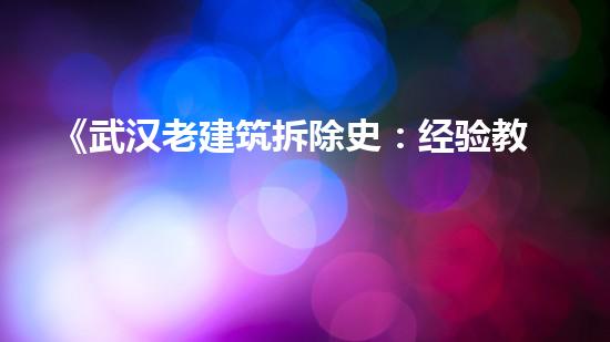 本文主要围绕《武汉老建筑拆除史:经验教训与反思》展开,从一个拆除行业专家的角度,深入探讨这篇文章所涉及的内容。通过引出读者的兴趣,并提供背景信息,引入正文。