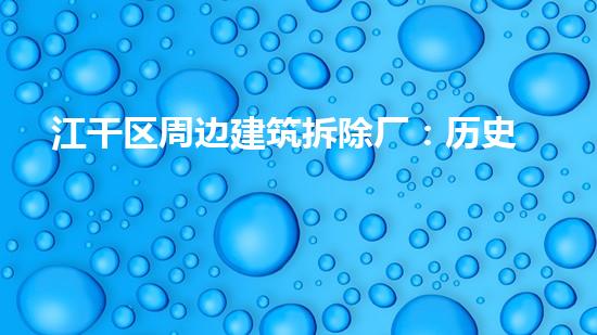 江干区周边的建筑拆除行业起源于上世纪八十年代末。由于城市的不断扩张和发展,越来越多的老旧建筑物需要被拆除,给建筑拆除行业带来了巨大的商机。经过几十年的发展,这一行业已经成为江干区的支柱产业之一,为当地经济发展做出了重要贡献。