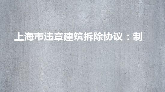 上海市违章建筑拆除协议的制定与实施,需要依靠合理的立法和有效的执行。首先,需要明确何为违章建筑,同时规定拆除标准和程序。其次,制定惩罚措施,同时加强对建设商和承建商的监管,保证规范化建设。最后,加强监管力度,确保规定落实到位。