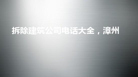 本文将介绍拆除建筑公司电话大全,特别是在漳州地区,快速便捷联系公司,以帮助读者更好地了解拆迁建筑的情况。文章将从专业角度出发,深入探讨拆除建筑公司电话大全的不同方面,以提供更多的参考和帮助。