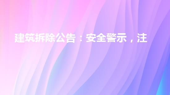 本篇文章介绍的是一份建筑拆除公告,强调了拆除过程中的安全警示和注意事项,旨在提醒工程人员和施工单位注意安全,在环保方面尽可能减少对环境的影响。文章将从化工厂拆除过程中的清洗置换、设备回收、废物处理、不动火水刀切割拆除技术等方面进行阐述。