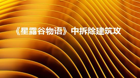 《星露谷物语》是一款经典的农业模拟游戏,其中玩家不仅可以养殖农作物、养动物、采矿、捕鱼等,还可以进行建筑拆除工作。本文从一个化工技术专家的角度,从四个方面介绍了拆除建筑攻略:快速搞定不再烦恼!在实际情况中,化工厂常遇到设备拆除、污染搬迁等问题,本文对此也做出了一些对应的建议。