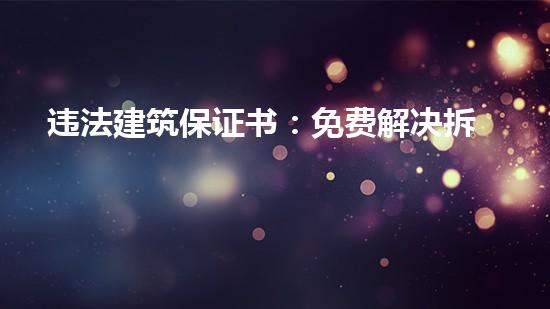 违法建筑保证书是指任何单位和个人在拆除违法建筑时,需向政府申请,由政府审核后签发的保证书。保证书是为了保障政府和个人权益,保证拆除工作能够有序进行并避免可能出现的纠纷。拆除违法建筑需要遵循相关拆迁政策和规定,依照相关法律程序进行。