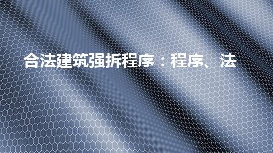 在本文中,我们将深入探讨合法建筑强拆程序:程序、法规与实践。本文将涵盖该过程中的各种方面,包括其法规和实践方面的细节,让读者对此过程有更深入、更全面的理解。