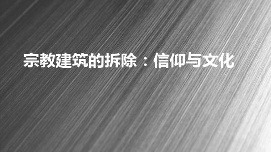 宗教建筑是人类历史、文化、宗教以及艺术的重要见证,同时也是各大宗教信仰的象征。因此,在宗教建筑拆除时,需要考虑当地居民的宗教情感和文化传承的重要性。只有通过与宗教组织和当地居民充分沟通,建立良好的关系,才能达到拆除的最佳方案,避免产生不必要的矛盾和冲突。