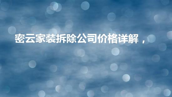 家装拆除是现代家居装修的一个必经环节,周围朋友经验无法复制且大型装修公司收费较高,让许多业主不得不寻找性价比高的拆除公司。本文将为大家详细介绍密云家装拆除公司的价格及相关服务,让您在宅家装修的道路上无忧无虑。