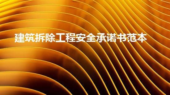 建筑拆除工程安全承诺书是指建筑拆除单位对安全工作所做的一份书面承诺,它是建筑拆除工程的必备文件之一。建筑拆除工程安全承诺书的范本应包括工程概况、安全管理、安全技术措施、环保措施、进度计划、安全保险、责任划分、安全监督等内容。填写时应注意承诺书的格式、合规性和可操作性。
