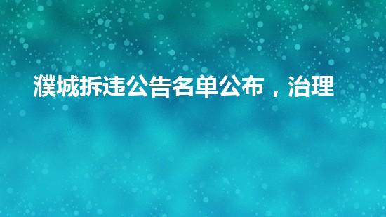 治理违法建筑,对人民群众的生命财产安全,对城市的环境整洁,都有着不可低估的重要性。濮城治理行动的背景是由于无节制地推进旧村改造和城市化建设,一些地方政府、个人开发商和房产商在不具备建设资质、不符合建设规划的情况下,私自建造大量违法建筑。这些建筑不仅难以达到相应的安全标准,还严重影响了城市建设形象。因此,此次治理行动具有非常迫切的必要性。