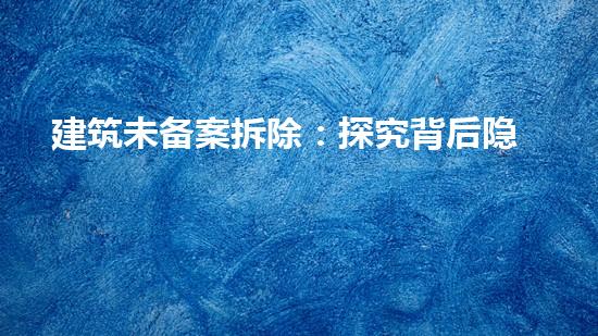 建筑未备案拆除中,环保施工也是至关重要的一个方面。环保施工包括建筑垃圾的清理、空气质量的保护、生态环境的保护等等。在拆除过程中,我们需要采用低碳环保的方法,以减少对环境的损害,并保证拆除过程安全、高效。