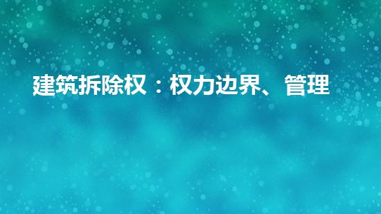 近年来,随着城市建设的快速发展,建筑拆除成为了令人关注的问题。本文拟从专业的角度出发,对建筑拆除权的权力边界、管理规定与法律责任进行探讨,旨在引发读者关于该问题的兴趣,并提供相关背景信息。