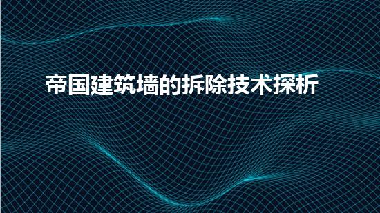 帝国建筑墙的拆除技术是建筑行业中备受关注的话题。该技术已经被应用于许多拆除项目中,并且取得了显著的成果。本文从化工技术专家的角度出发,对帝国建筑墙的拆除技术进行了深入的分析和探讨。在此基础上,提出了一些可行性的建议和未来的研究方向。