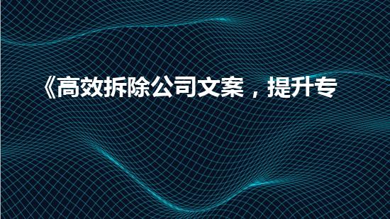 本文以《高效拆除公司文案,提升专业素质》为中心,从拆除行业专家的角度出发,对如何提高公司文案撰写效率和专业素质进行详细的深入阐述。文章将从以下几个方面进行分析:文案审查的重要性、文案结构设计、专业术语的准确运用、信息的整合和呈现、沟通交流的技巧。