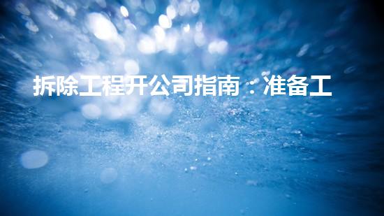 每个行业都有自己的准备工作,如果我们想要开拆除公司,也需要做足准备工作。首先,我们需要考虑公司名称、公司定位、服务范围等问题。其次,需要进行市场调研,了解竞争对手、市场需求等情况。最后,需要考虑公司注册、金融财务等问题。