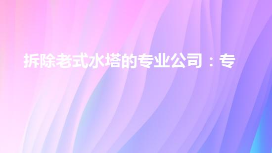 拆除老式水塔是一个需要高度专业技术和安全保障的任务。巴洛仕集团化工厂拥有专业的团队和完善的设备,以拆除老式水塔的专业公司形式提供服务。本篇文章将从多个方面深入阐述巴洛仕专业拆除老式水塔的优势和实用性。