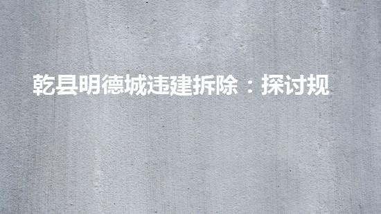 乾县明德城违建拆除是当下城市规划管理落实与城市建设平衡的重要话题。本文以拆除行业专家的角色,从四个方面对这一问题做详细深入的阐述,包括违建概况、规划管理落实、拆除技术应用和环保施工等方面,引出读者的兴趣,并提供支持和证据。