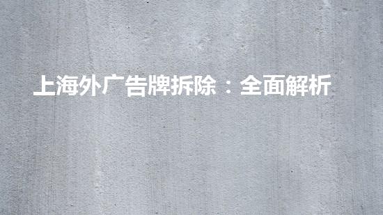上海外广告牌拆除是一项高风险的工程,需要运用先进的技术和安全措施来保证拆除的顺利进行。本文将从专业角度对其进行全面解析,包括拆除技术和安全措施。