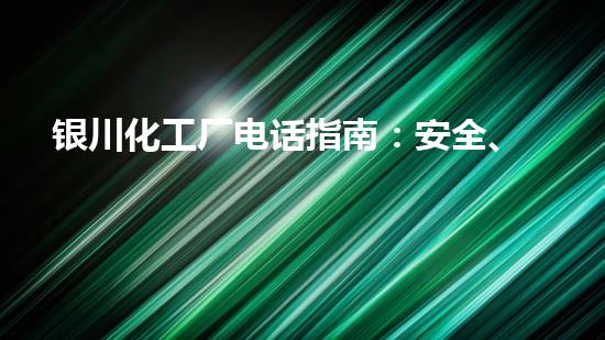 银川化工厂电话指南:安全、经过与资深服务刨析