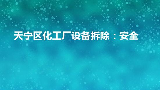 老旧化工设施即是潜在的重大危险源。彻底拆除这些设施,是从根本上其对周边居民和都市公共安全的长期威胁。这体现了人民生命财产安全的高度负责,是建设平安天宁、天宁的主要举措,能显著增强市民的获得感、感和安全感。