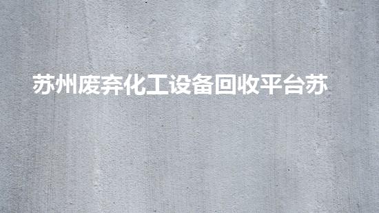 苏州废弃化工设备回收平台苏州废弃化工设备回收平台揭秘如何实现高效环保资源再利用