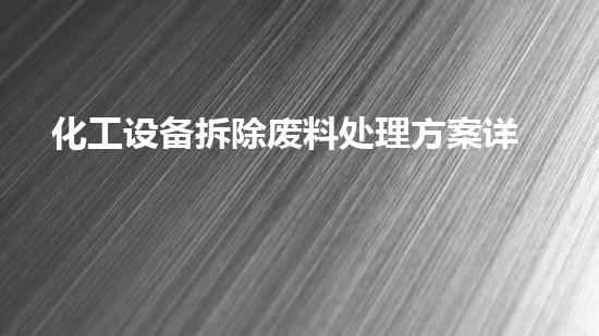 摘要:化工设备拆除废料处理一直是一项重要的任务。本文介绍了巴洛仕集团化工拆除废料的一站式解决方案。该方案采用水刀不动火拆除技术,专注于化工不动火拆除技术的研究和应用,并提供危废处理和土壤修复等服务,可...