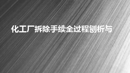 化工厂拆除手续全经过刨析与根本要点指南伴随产业结构调整和环保要求日益严格,越来越多的化工厂面临拆除或搬迁的命运。化工厂拆除不但关系到企业自身的利益,更涉及到环境保护、公共安全...