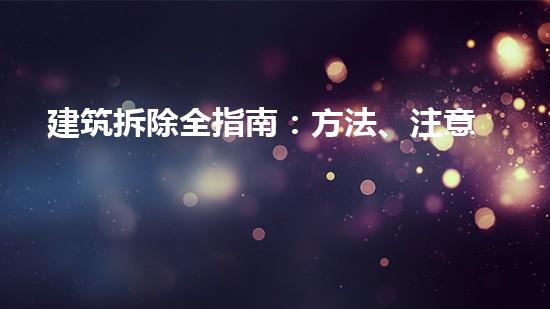 摘要:建筑拆除过程中,不仅需要精准、高效的拆除方法,更需要注意事项和安全措施。本文从化工厂拆除的实例入手,详细阐述建筑拆除全指南:方法、注意事项与安全措施。旨在为读者提供全方位、全面的建筑拆除知识,并...