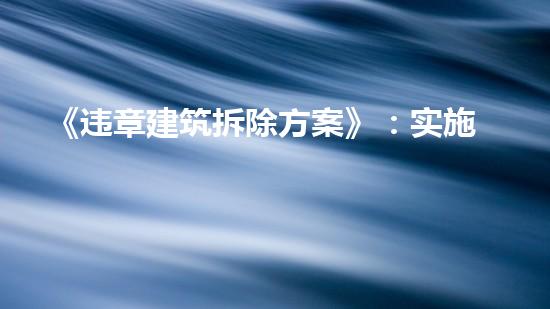 摘要:《违章建筑拆除方案》:实施计划及注意事项是关于拆除行业的重要指导性文件。本文由一位化工技术专家角度出发,就该方案的实施计划及注意事项,拆除前清洗置换,设备回收,污泥减量化,废液处理,油罐拆除,危...
