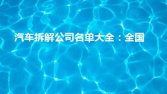 汽车拆解公司名单大全:全国近百家合法拆解厂名录,快来寻找最适合您的选择!
