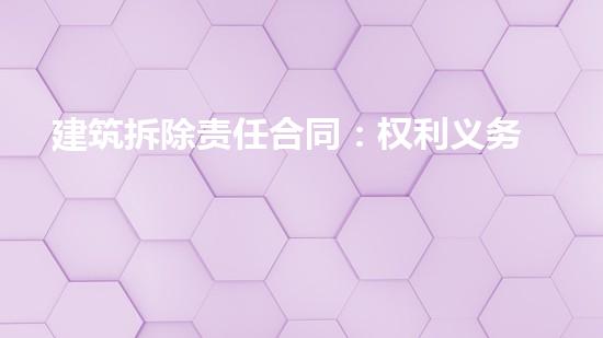 摘要:建筑拆除责任合同是拆除行业中的重要一环。在拆除过程中,相关方需明确权利和义务,并制定合适的责任合同。本文以权利义务和纠纷解决为中心,通过拆除行业专家视角,详细阐述建筑拆除责任合同。从拆除前的准备...