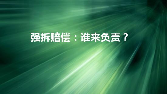 摘要:强拆赔偿:谁来负责?这是一个当前社会普遍关注的问题,随着国家对违法建设的清理力度不断加大,强拆也越来越频繁,而拆迁中的赔偿问题也越来越成为人们关注的焦点。本文从化工专家的角度出发,详细深入地探讨...