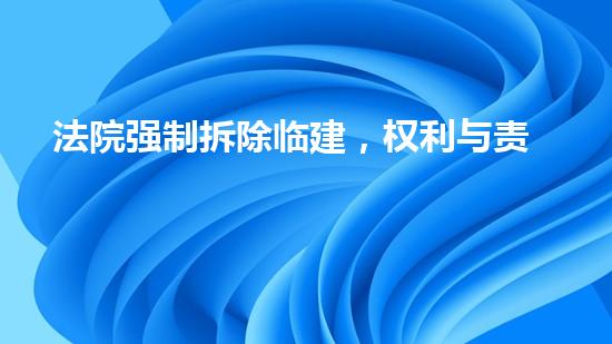 摘要:本文主要探讨法院强制拆除临建时在权利与责任之间发生的冲突。有很多情况下,临建被认为是侵占市政用地,需要进行拆除。然而,在拆除时,相关方面可能会面临各种问题,例如需要缴纳高额的拆迁费用、拆除后对环...