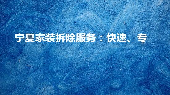 摘要宁夏家装拆除服务:快速、专业、低价是当前市场上备受欢迎的一种拆除服务。本文将从多个专业角度深入探讨宁夏家装拆除服务的优势,解析其快速、专业、低价的原因,并提供一些科技方面的解决方案支持。正文一、工...