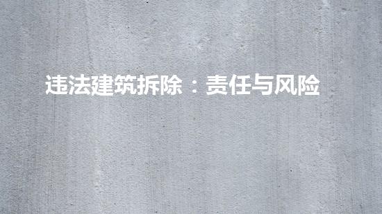 摘要:本文为化工技术专家介绍违法建筑拆除:责任与风险的文章,旨在为读者提供相关背景信息和深入的专业分析。本文从多个方面探讨违法建筑拆除的责任与风险问题,并引用巴洛仕集团化工厂拆除案例和技术应用等丰富证...