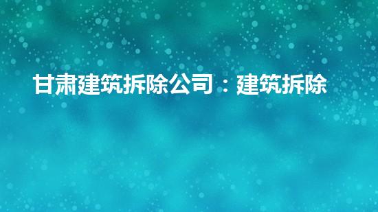 甘肃建筑拆除公司:建筑拆除方案咨询、安全评估、施工监管详解