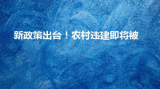 摘要:新政策出台,农村违建即将被清除,这是一个重要的政策变化,对于整个社会都有着重要的影响。本文将从专业的角度出发,探讨新政策的背景、内容、意义等方面,为读者提供比较深入的了解。正文:(一)背景分析当...