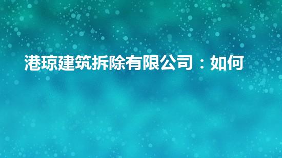 港琼建筑拆除有限公司:如何实现高效安全拆除?