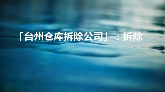 「台州仓库拆除公司」:拆除一片天,重建新生态