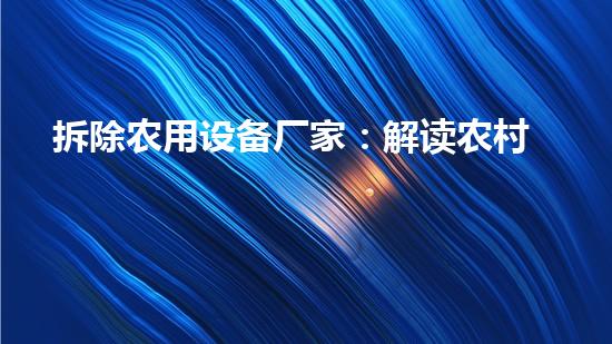 摘要:随着农业现代化的不断推进,农村的变革越来越显著,拆除农用设备厂家成为了农村新变革中不可或缺的组成部分。本文将从几个方面对这一话题进行深入解读,介绍现阶段农村变革的背景,分析拆除农用设备厂家所面临...