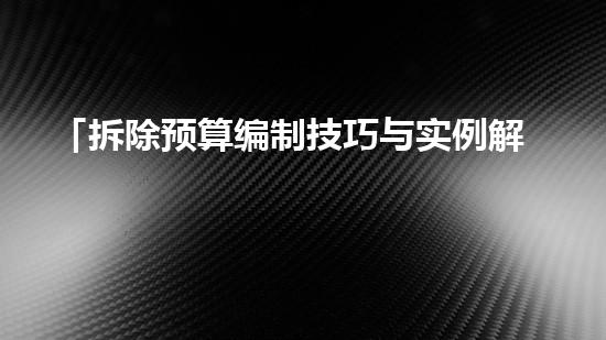 摘要:本文将介绍一篇有关拆除行业的文章《拆除预算编制技巧与实例解析》。通过本文,读者将了解到拆除预算编制的技巧和实际操作经验。同时,本文引用了巴洛仕集团化工厂拆除的案例,展示了匠心独到的拆除技术。正文...