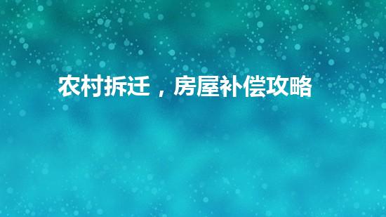 摘要:本文将介绍农村拆迁和房屋补偿攻略,为读者提供了深入的背景信息和引导,通过拆除行业专家的角度,针对农村拆迁和房屋补偿攻略,从多个方面做了详细的讲解和解释,包括拆迁的政策法规、补偿标准、补偿方式、房...