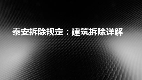 摘要:拆迁是每个城市发展进程中必不可少的一个环节,在泰安也不例外。建筑的拆迁规定十分复杂,不仅需要管理者制定合理的政策,还需要工程技术专家精确的分析和实施。本文将以泰安拆除规定:建筑拆除详解为中心,从...