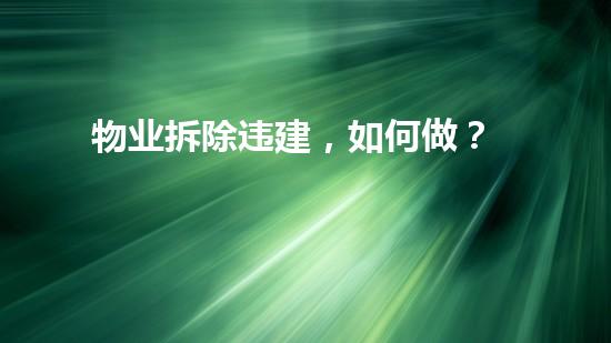 摘要:本文将介绍物业拆除违建的具体做法,主要包括以下四个方面:法律法规、工程技术、环保理念以及处理后续问题。通过分析这四个方面,本文将为读者提供一份完整的拆违建实战指南。正文:一、法律法规任何有建筑工...