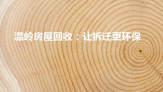 温岭房屋回收:让拆迁更环保,让旧屋更有价值!