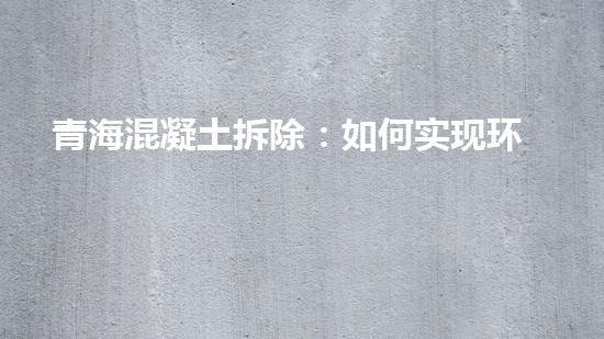 青海混凝土拆除:如何实现环保高效拆除?