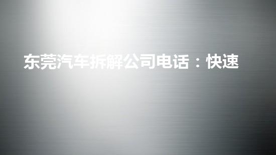 东莞汽车拆解公司电话:快速取走旧车,合法合规,全程无忧!