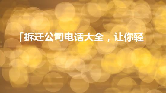 摘要:本文主要介绍了拆迁行业的一个必备工具——拆迁公司电话大全,特别关注望都区建筑拆除公司,并提供了一些背景信息。正文通过化工行业专家的角度,深入阐述了拆迁公司电话大全在拆迁行业中的重要性和实际应用,...